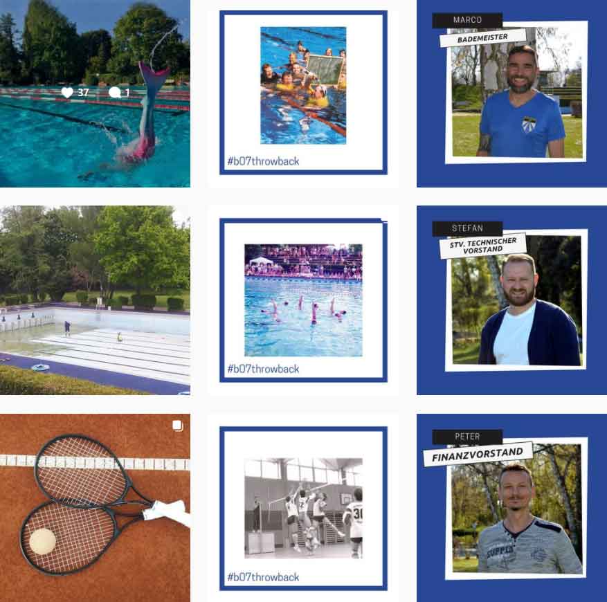 Wir von Kaltwasser haben zudem eine Social-Media-Strategie für den Verein konzipiert. Auf Instagram und Facebook machen wir seit 2021 das Bad erlebbar und zeigen die vielfältigen Aktivitäten wie Schwimmen, Stand-Up-Paddling, Tennis und mehr. Auch in 2022 führen wir dieses Engagement fort und begleiten die Social-Media-Arbeit des Bayern 07 Bads.