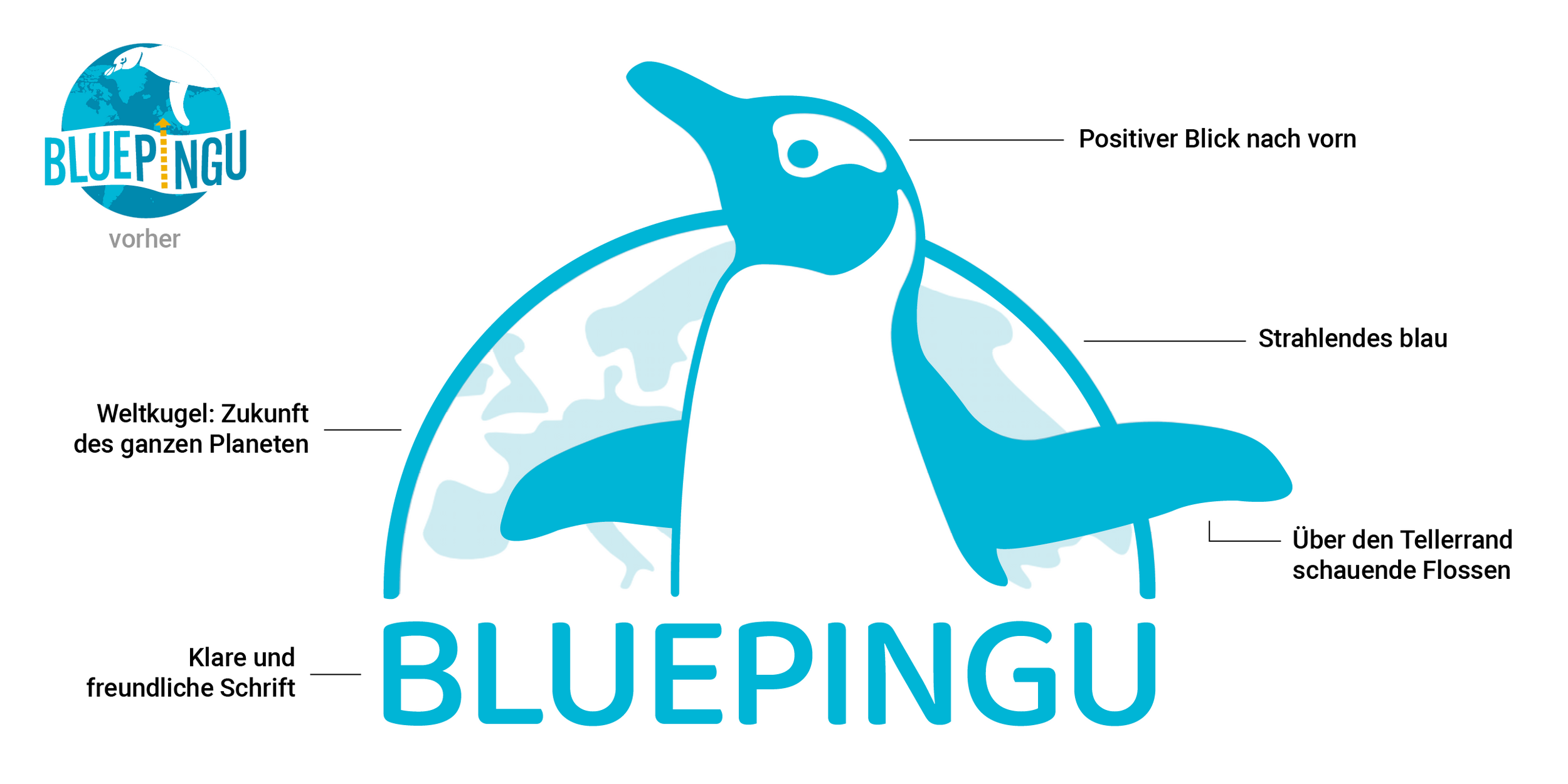 - Der Pinguin: Das namensgebende Maskottchen steht für Umweltbewusstsein, Gemeinschaft und Tatkraft. Er bleibt auch im neuen Logo das Herzstück.